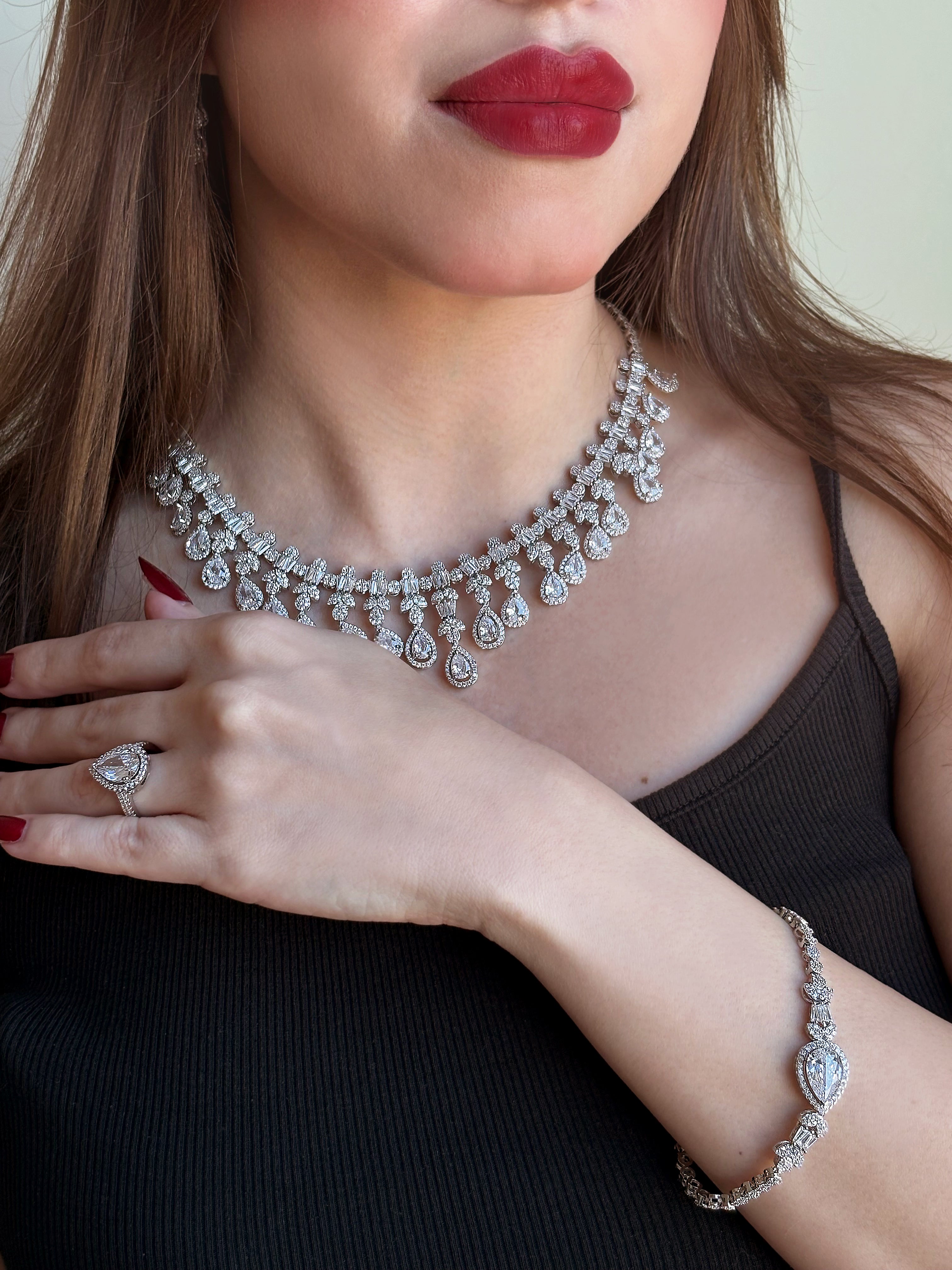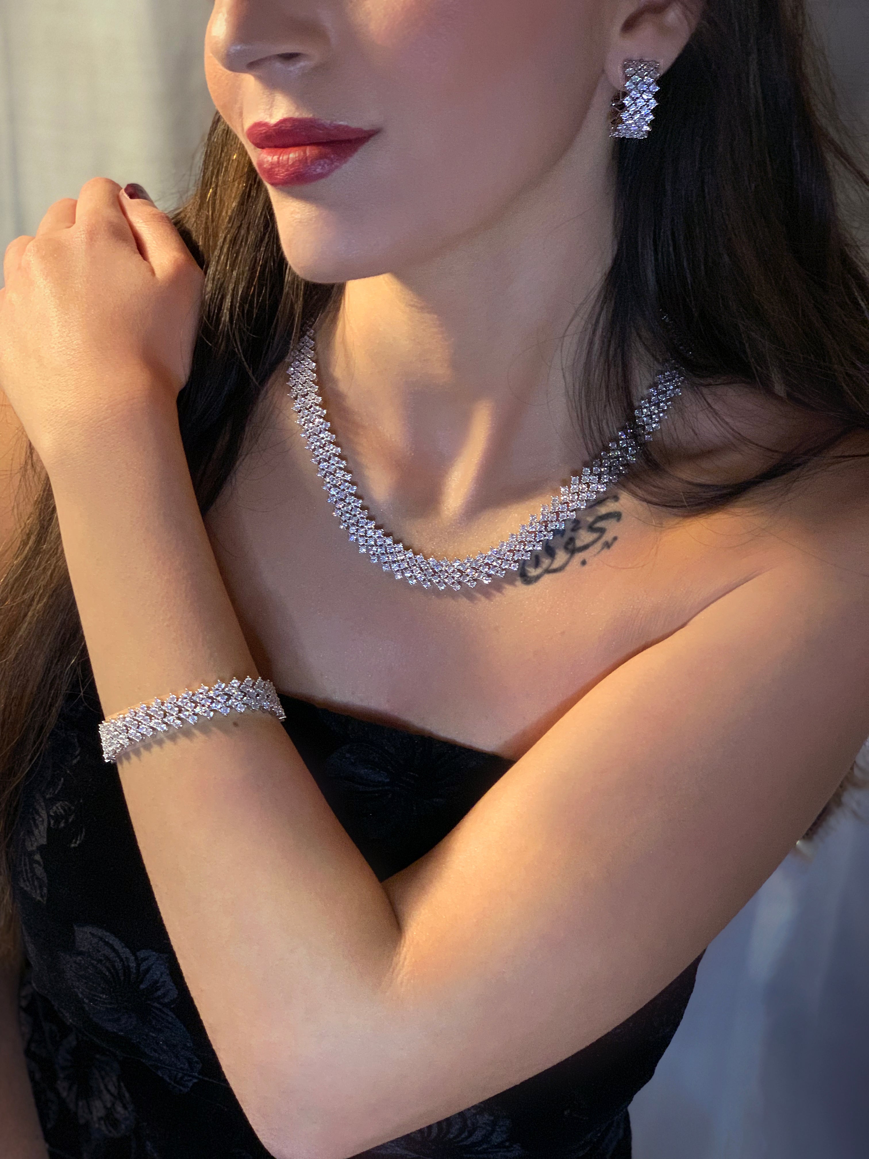 Imagine desert winds catching your shimmering crystals, each facet reflecting the fire within. Or city lights amplifying the brilliance of cubic zirconia, as unique as you are.