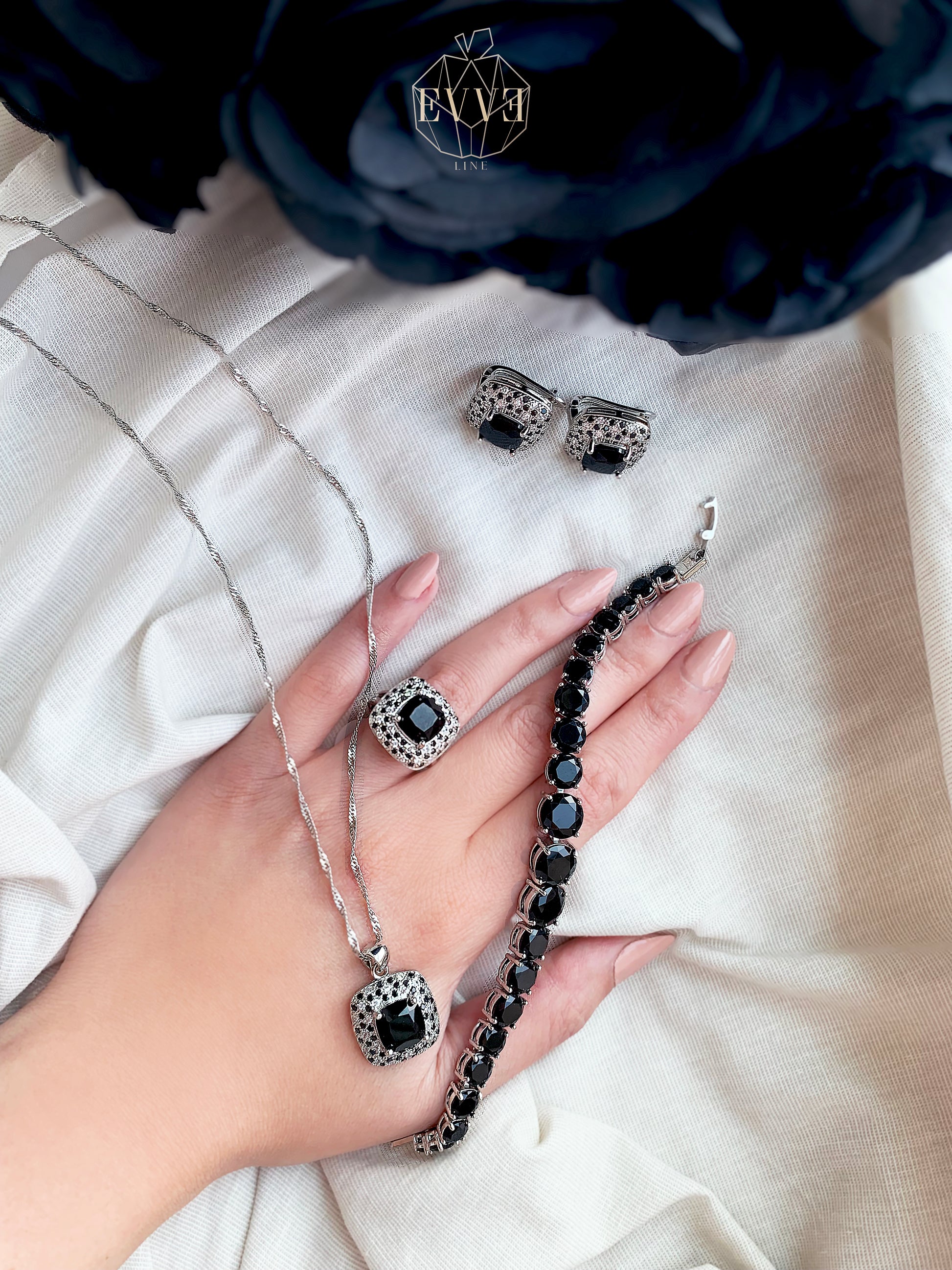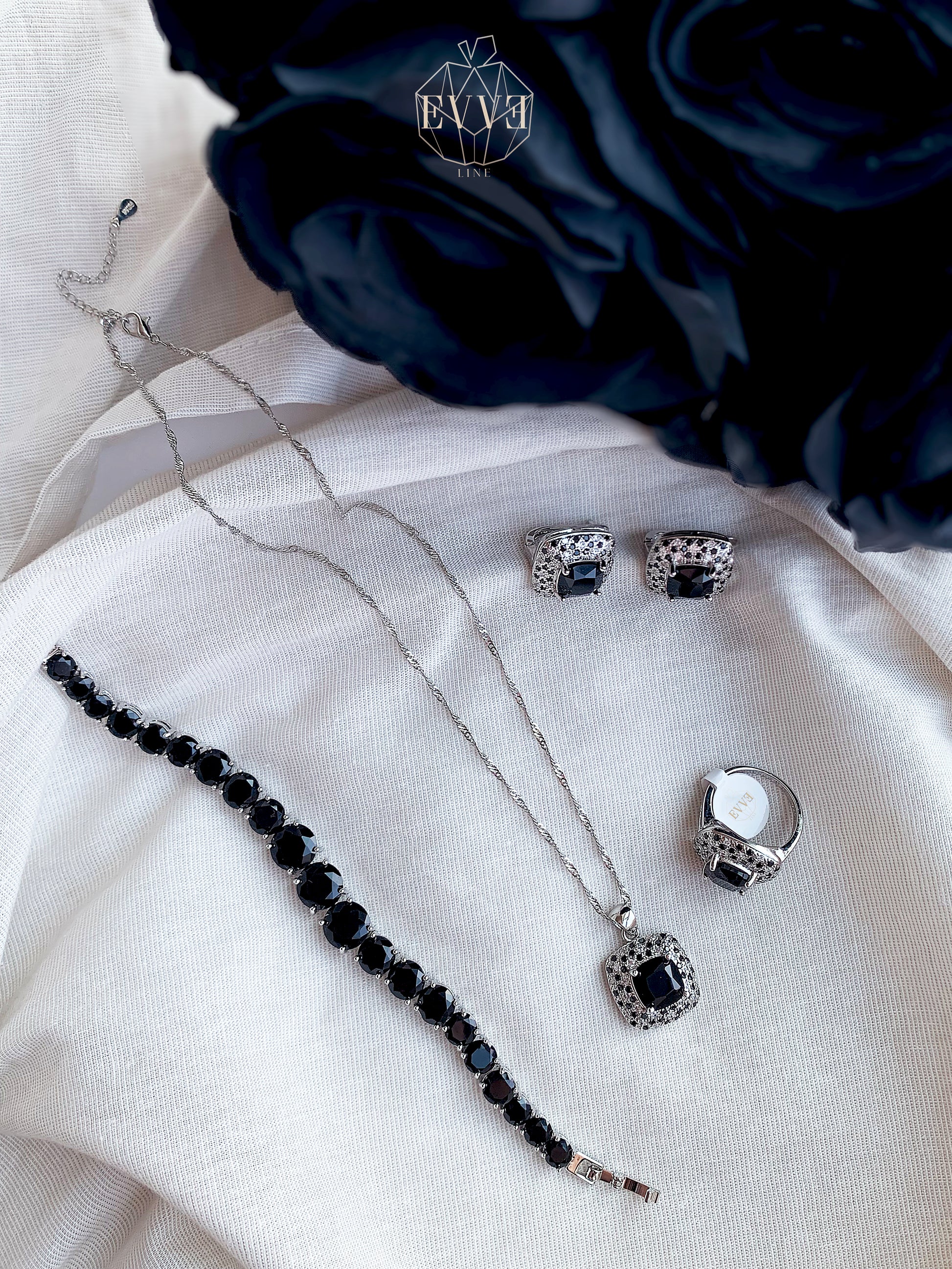 A Luxury Silver Set of 4 pieces Necklace, Earrings Bracelet and Ring