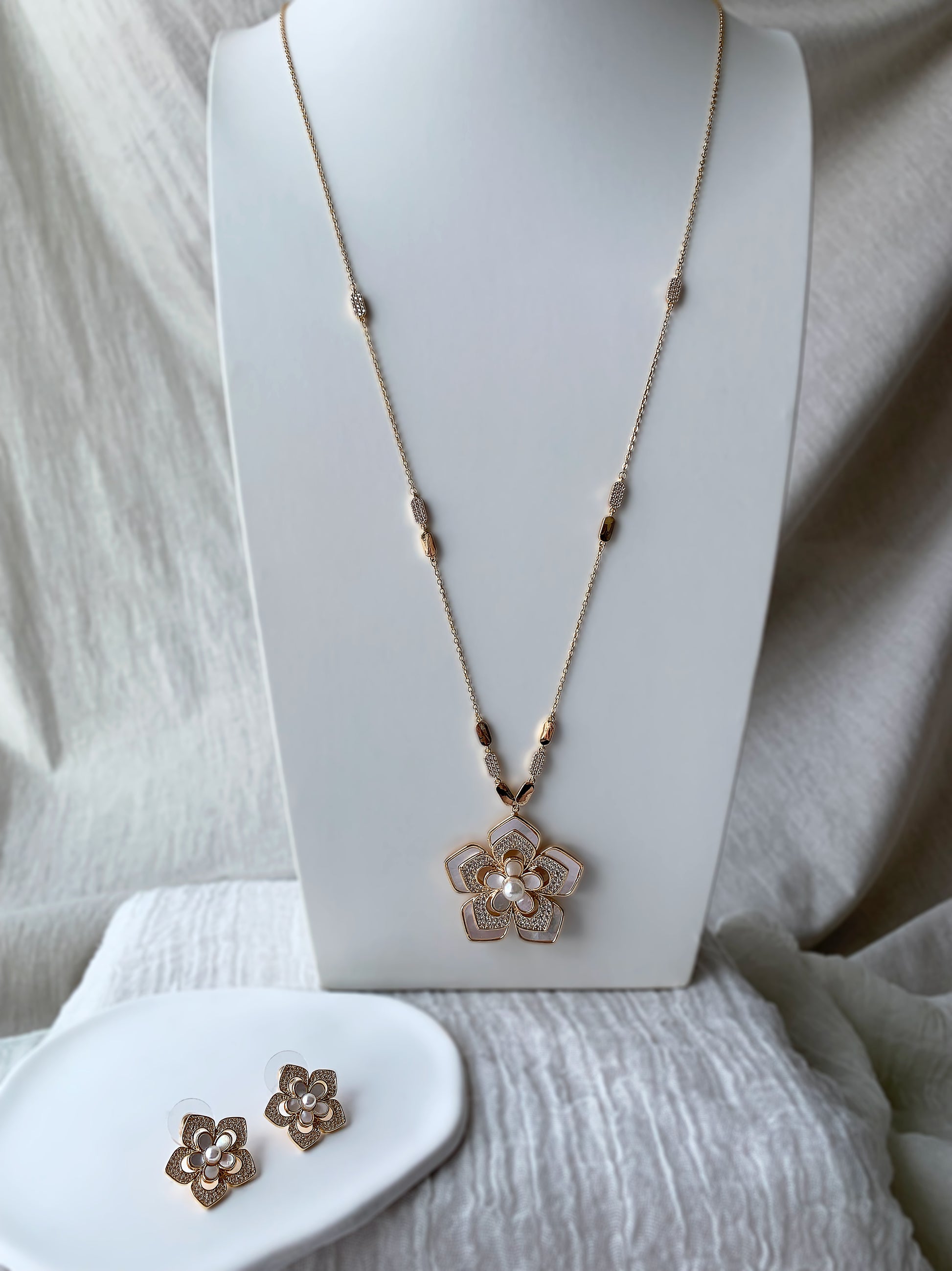 Stunning Set of 2 Pieces Long Necklace, and Earrings