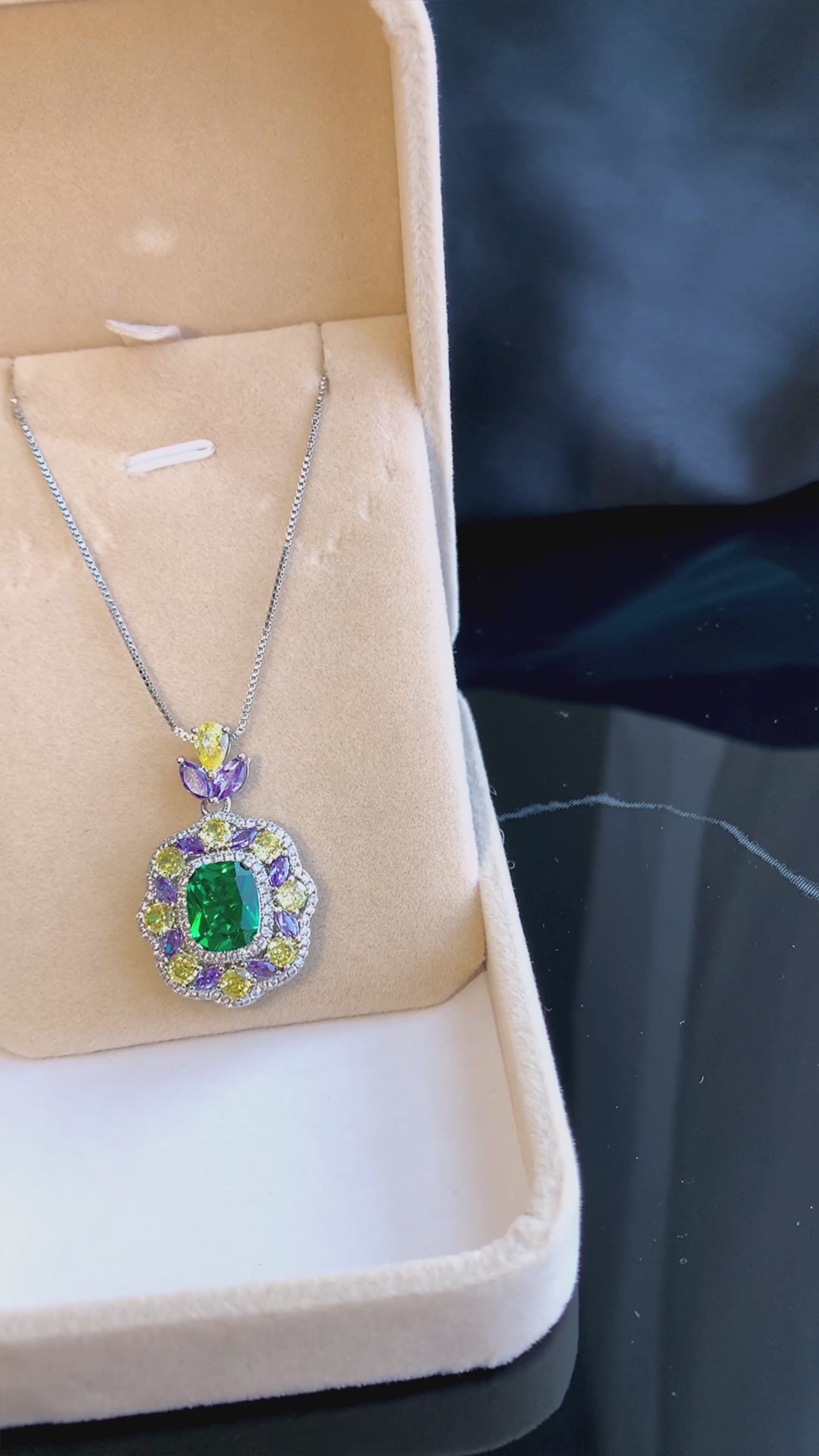 Inlaid in 5A Grade American Zircon Diamonds and Yellow, Purple and Green Crystal Gemstones