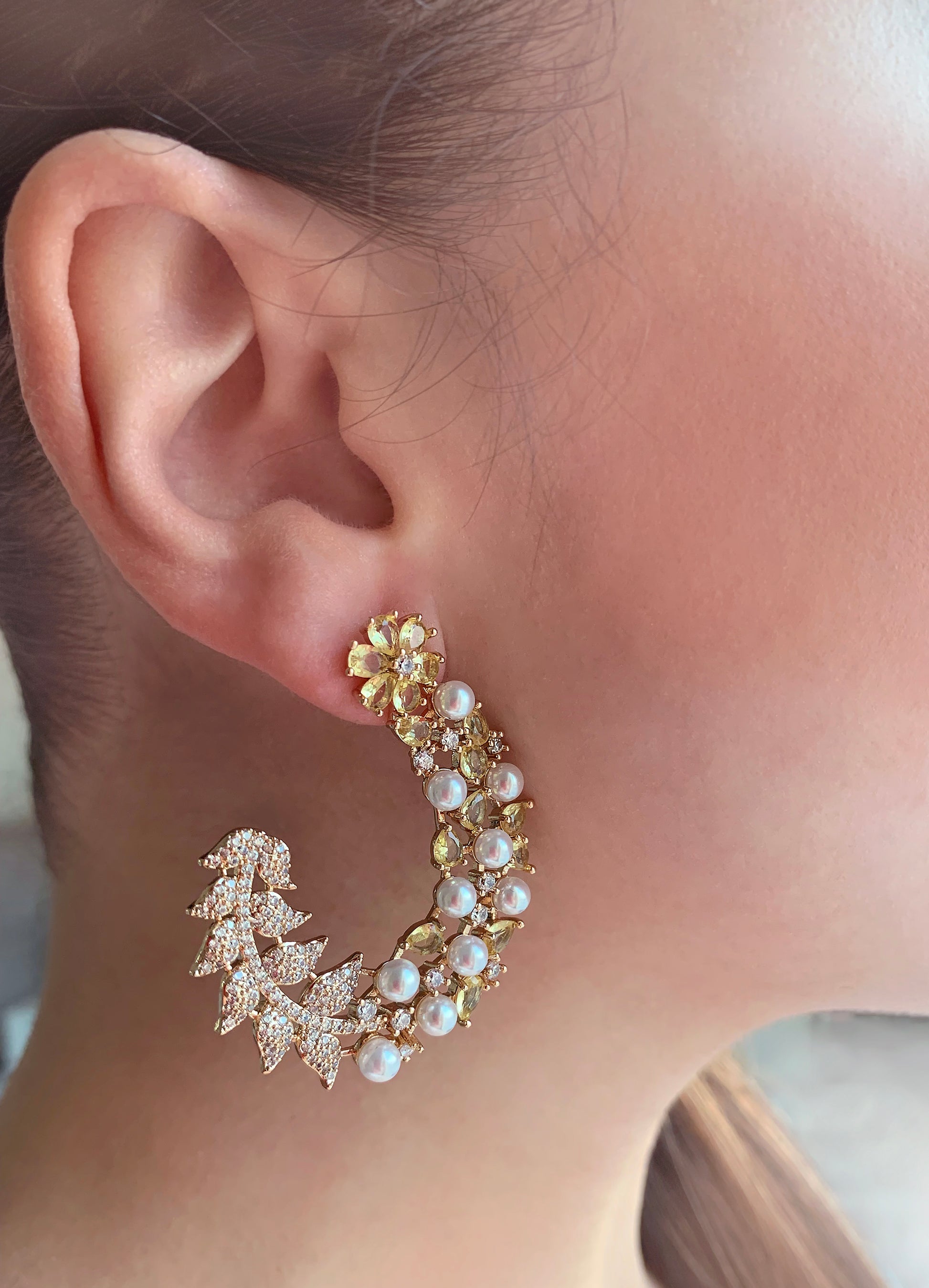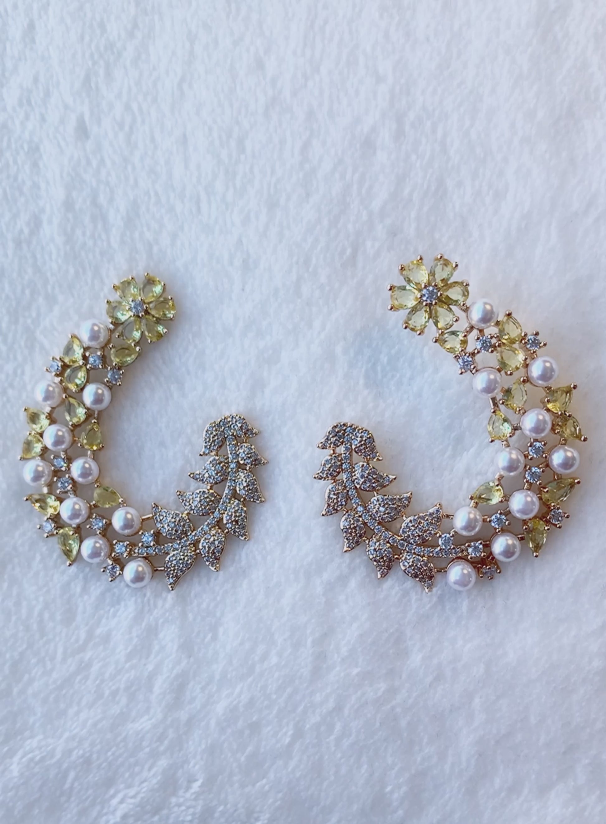 Inlaid in High Quality 5A Grade Zircon Diamonds with Yellow stones, and White Pearls