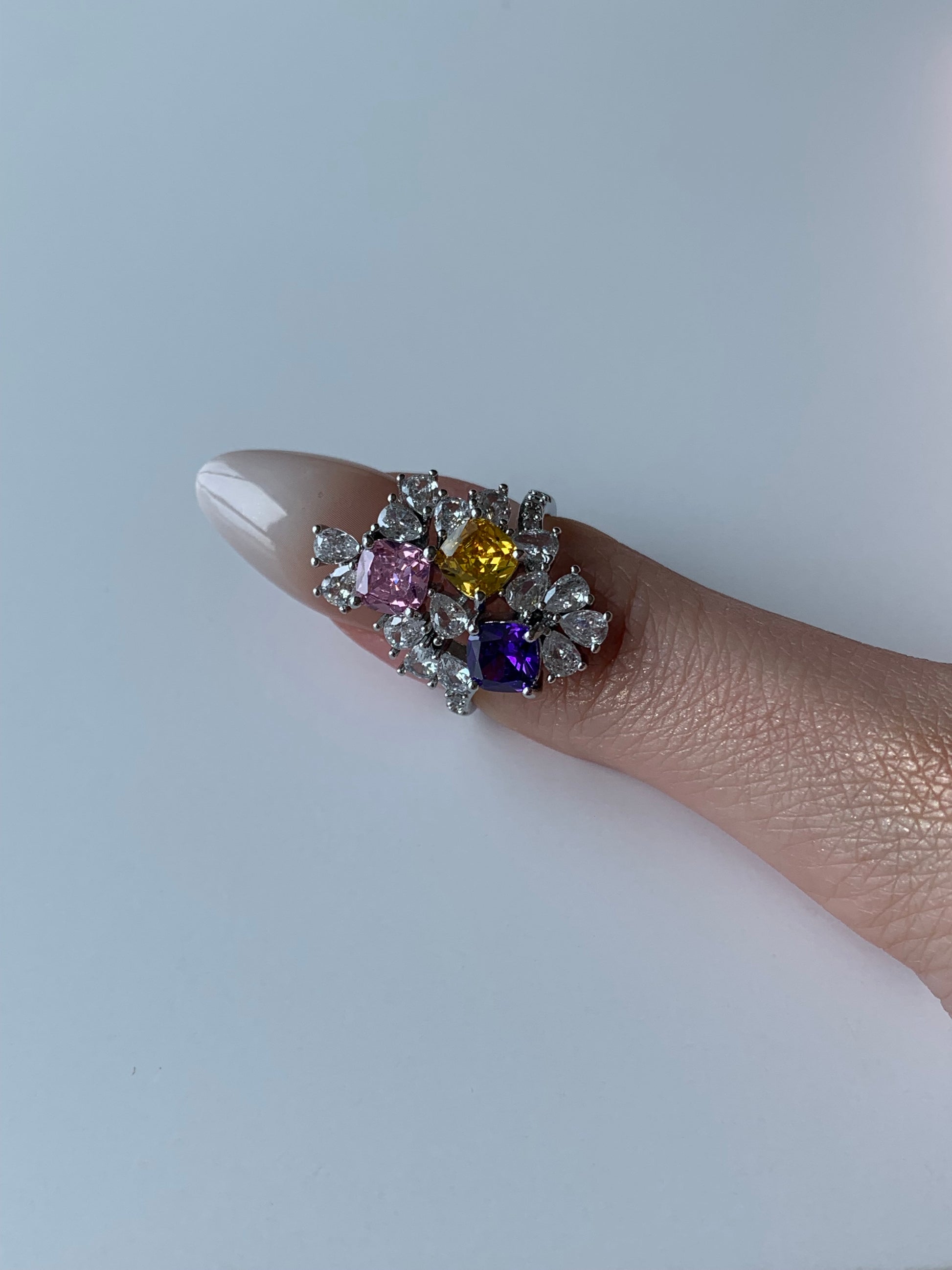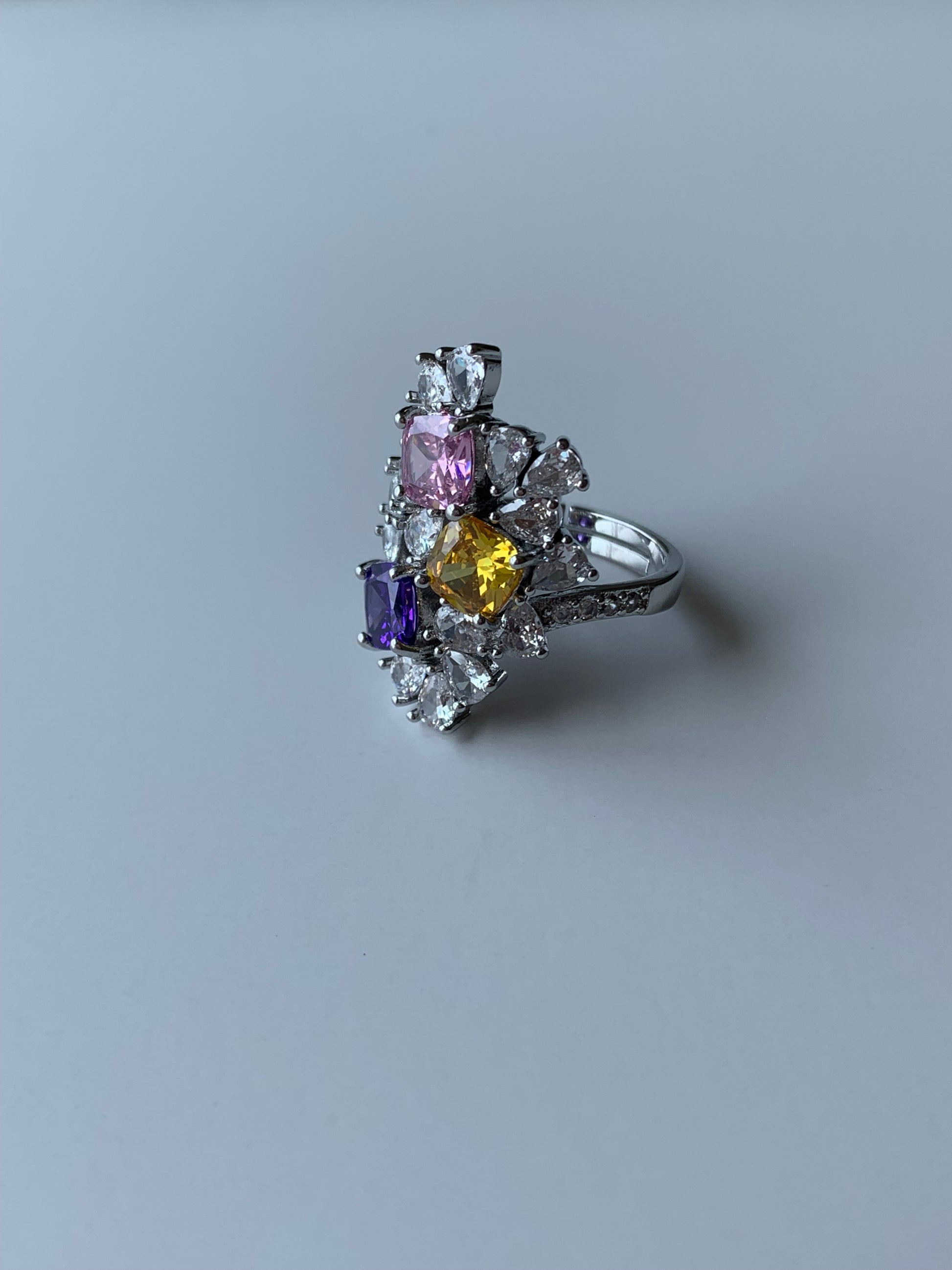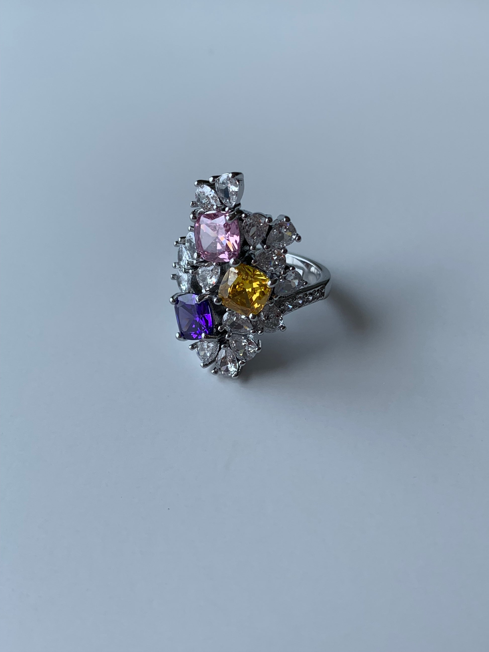 A Colorful Crystal Set of 3 pieces Necklace, Ring, and Earrings