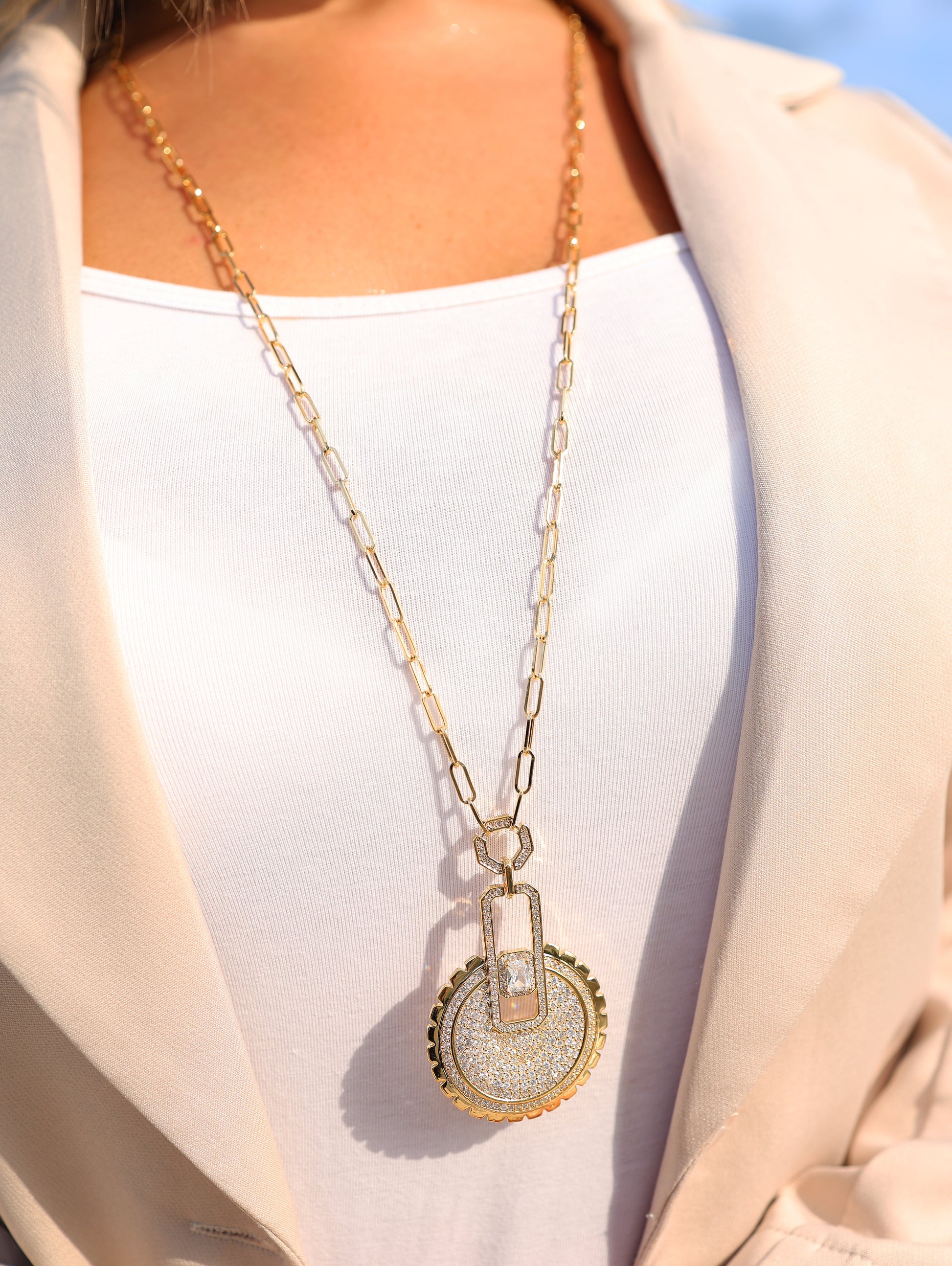 "A Stunning Luxury Set of 2 Pieces Long Chain, and Earrings"