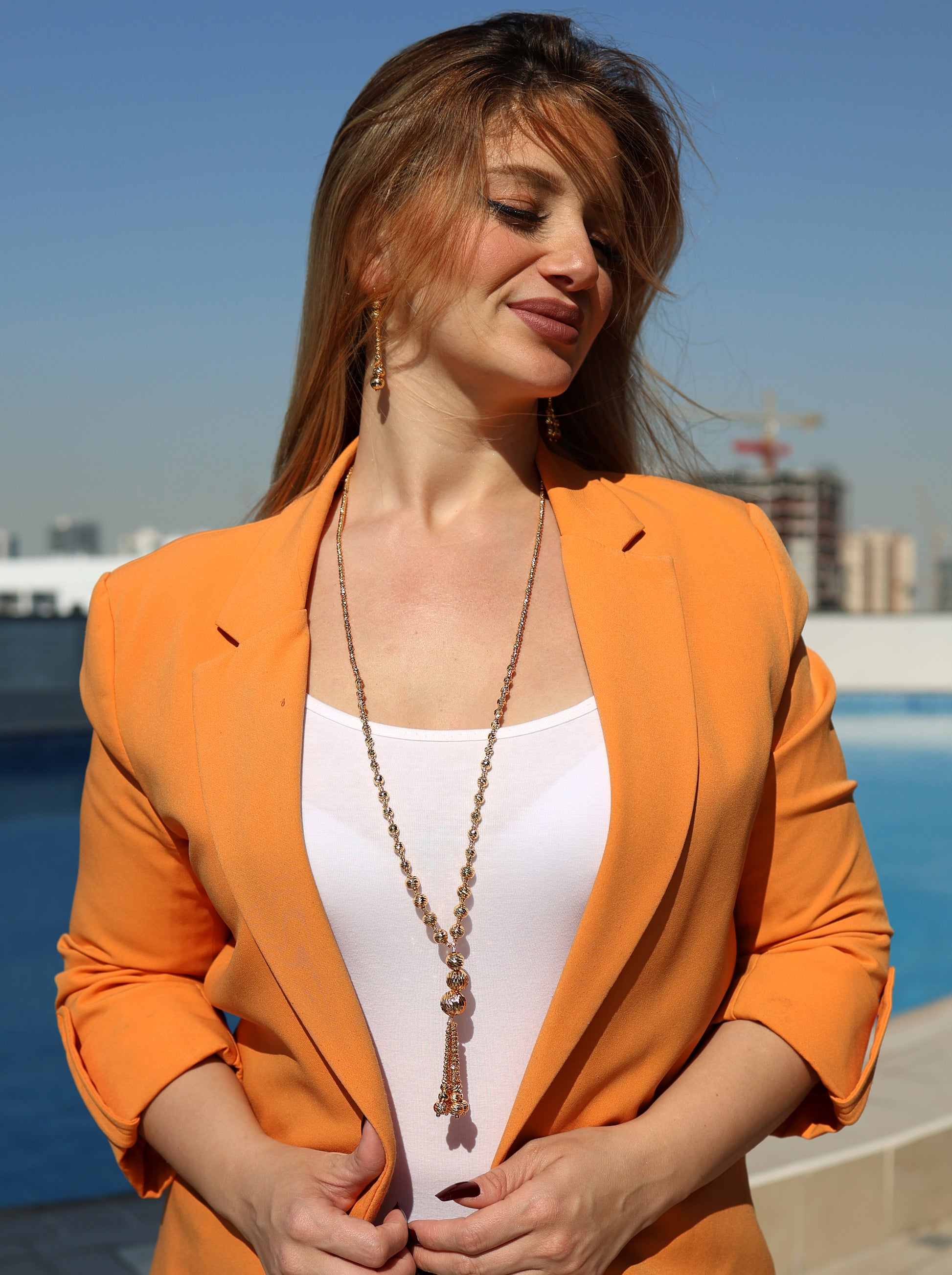 A Stunning Look Set of 2 Pieces Long chain, and Earrings