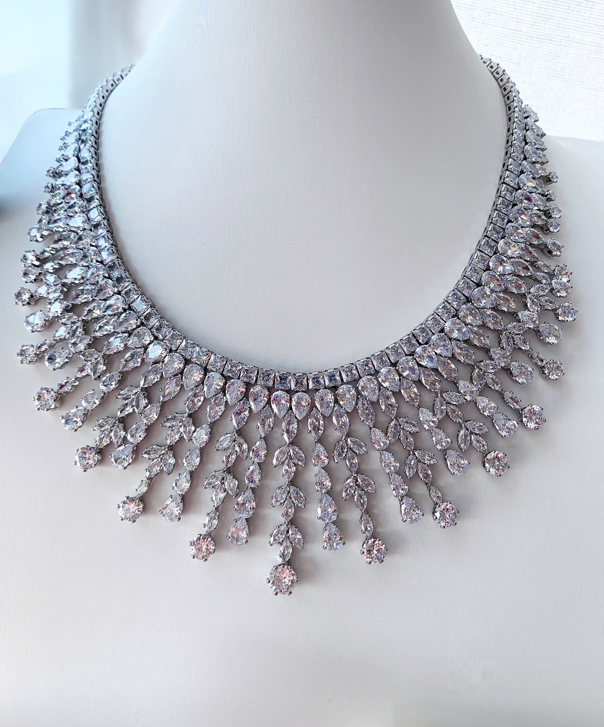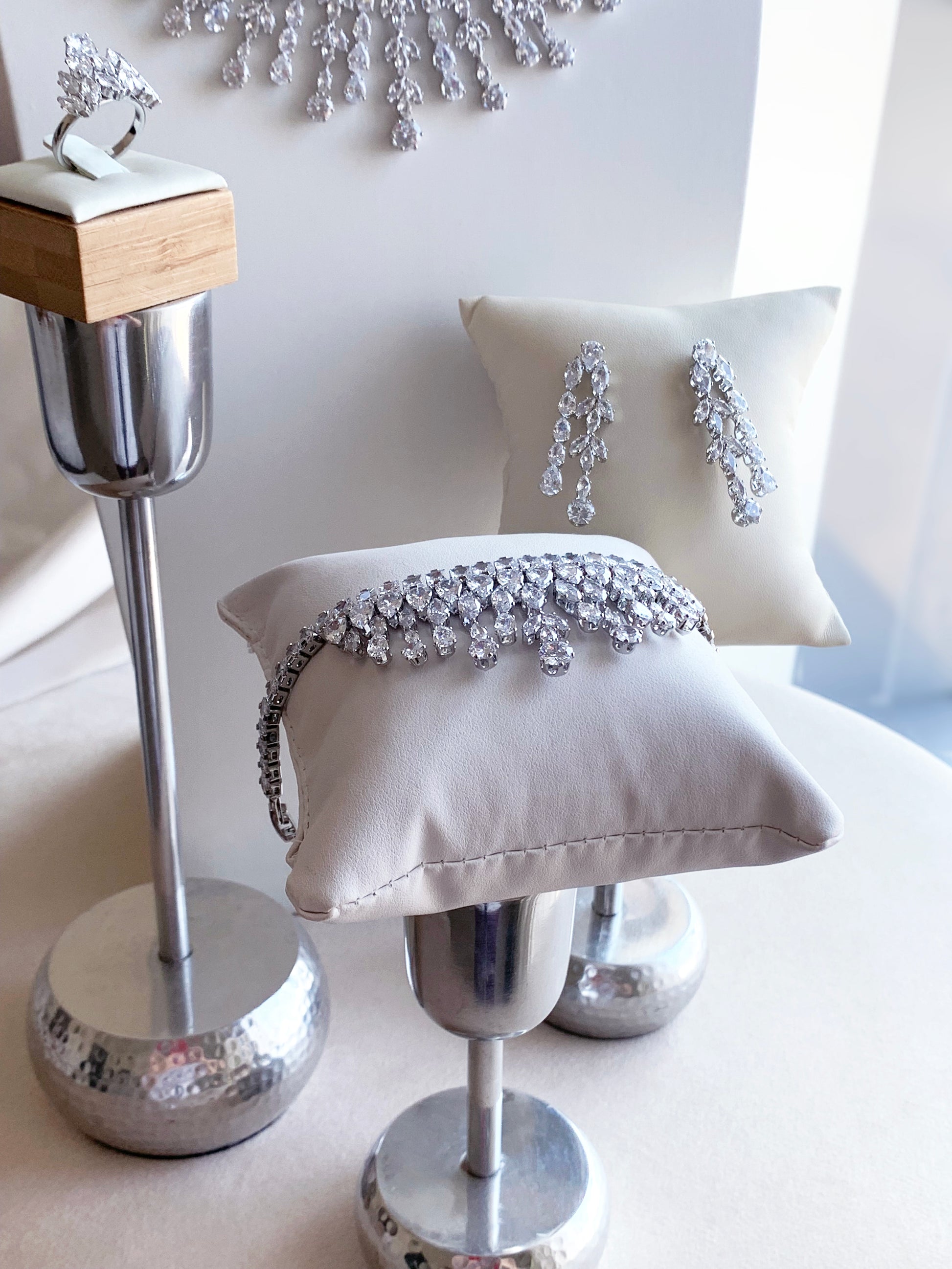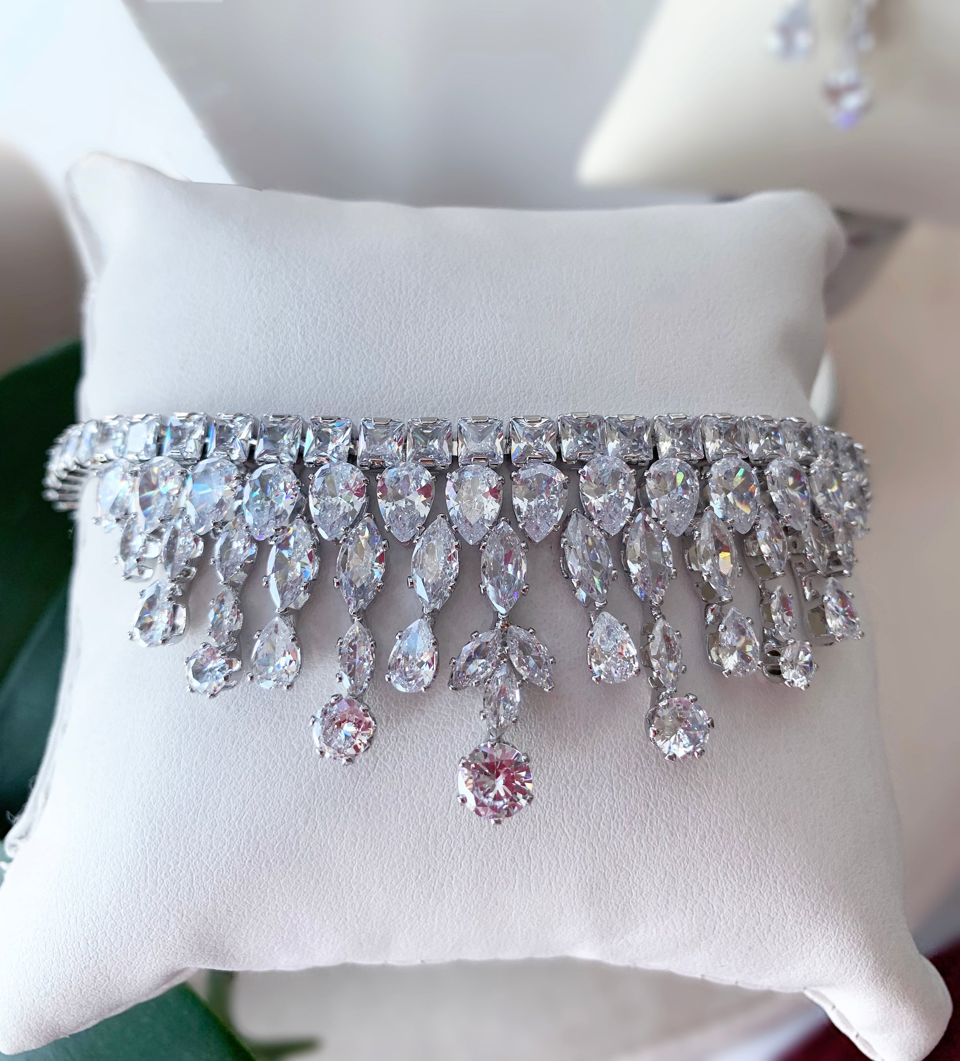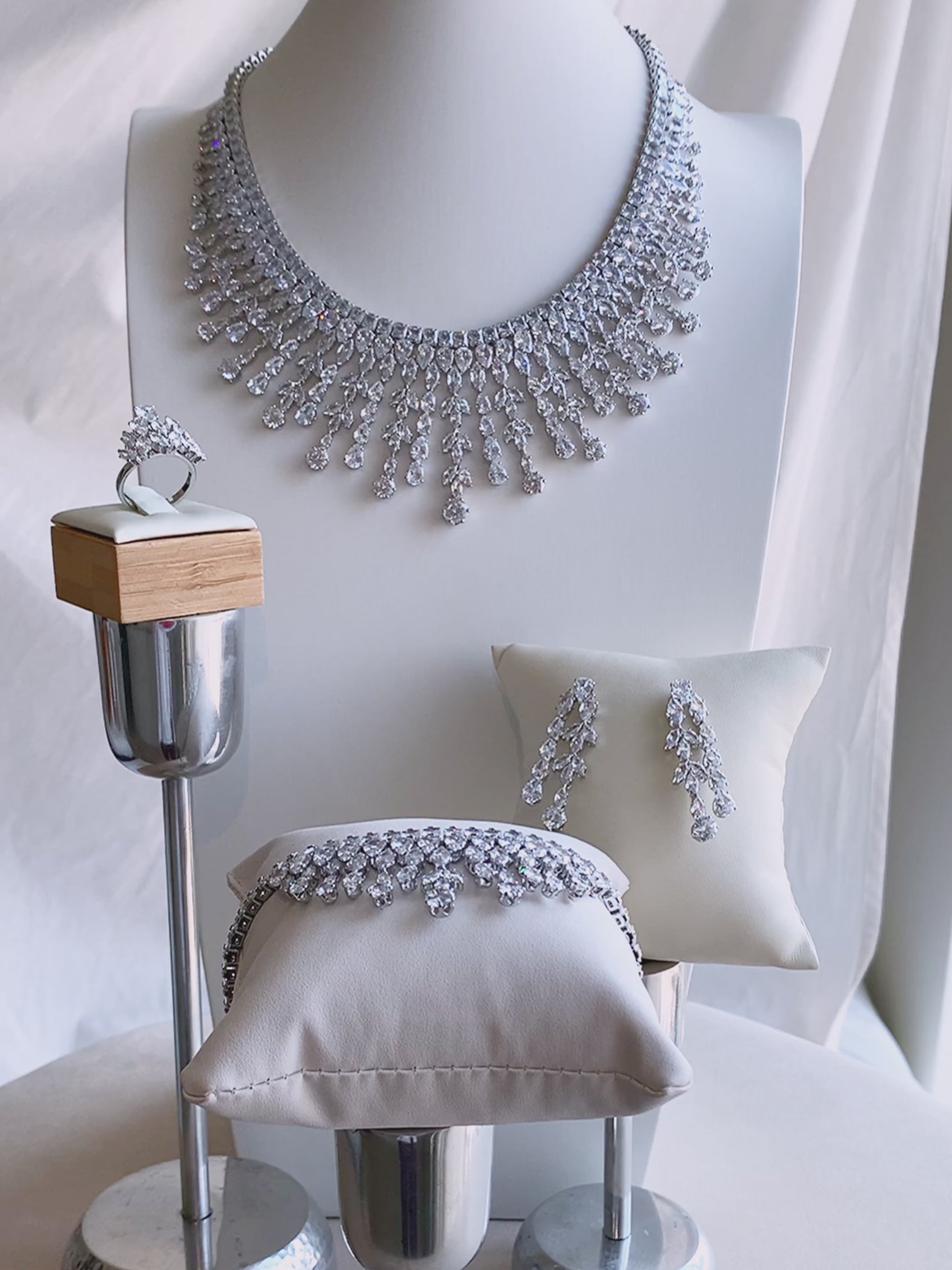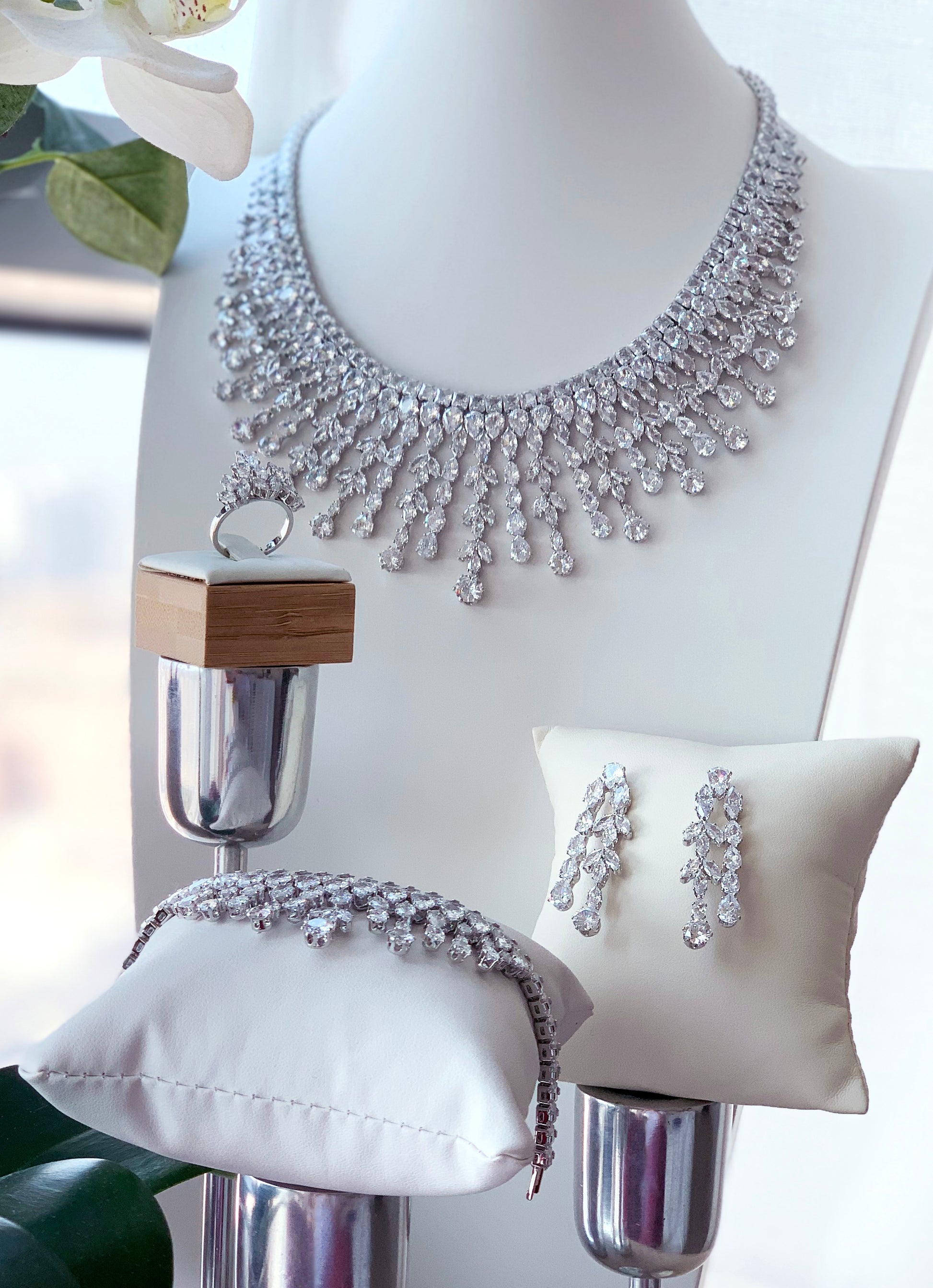 Very Luxury Bridal Set of 4 Pieces Necklace, Earrings, Bracelet, And Adjustable Ring