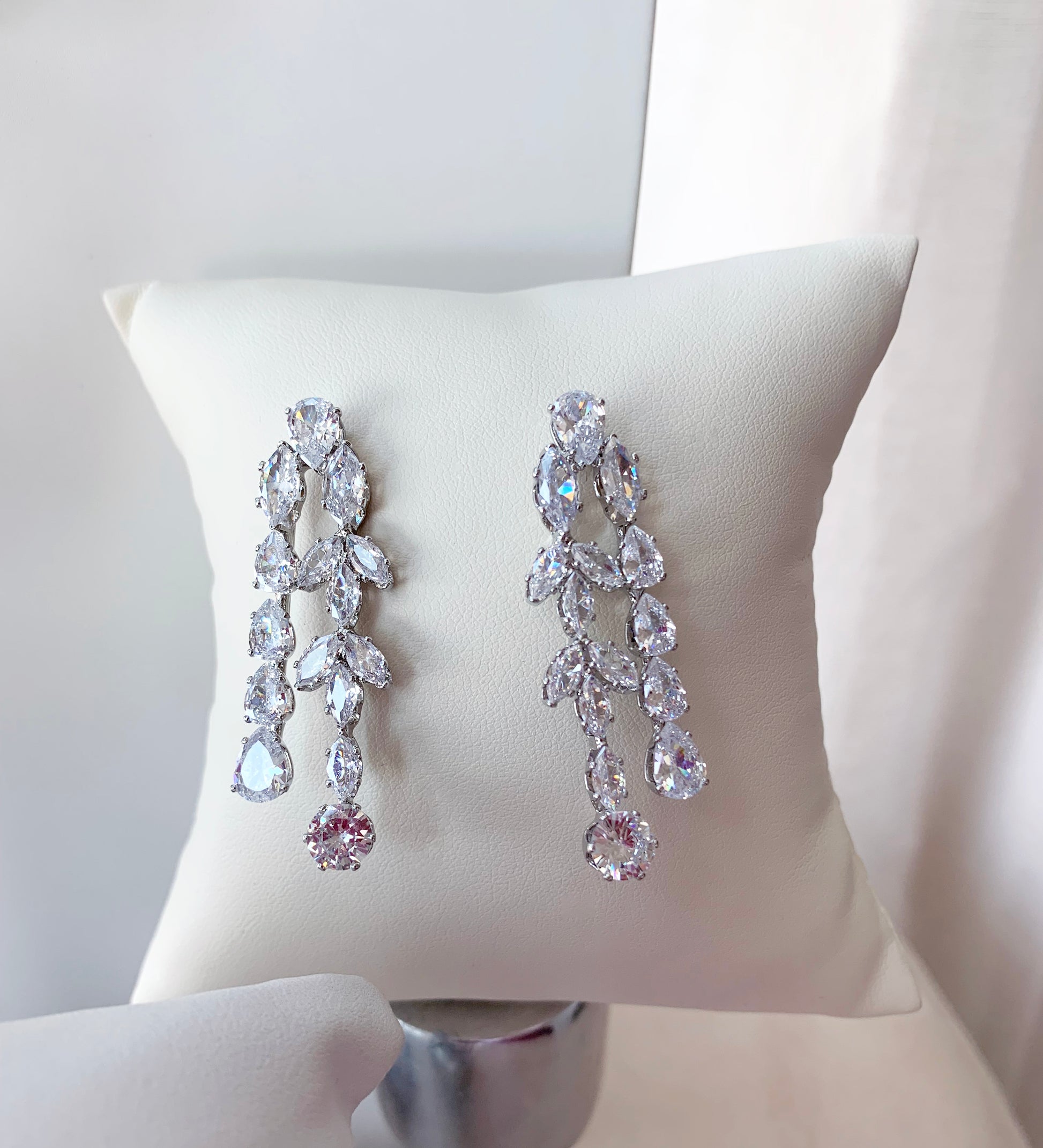 Inlaid in High Quality 5A Grade Zircon Diamonds and White Crystal Stones